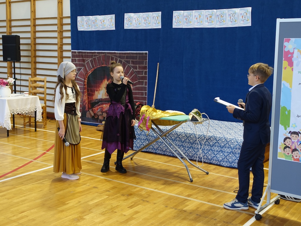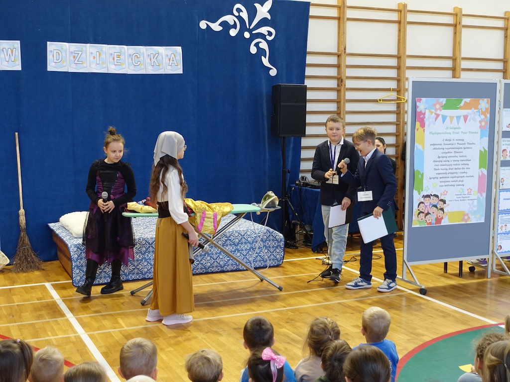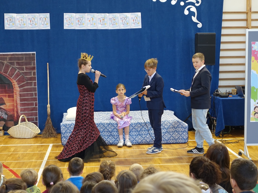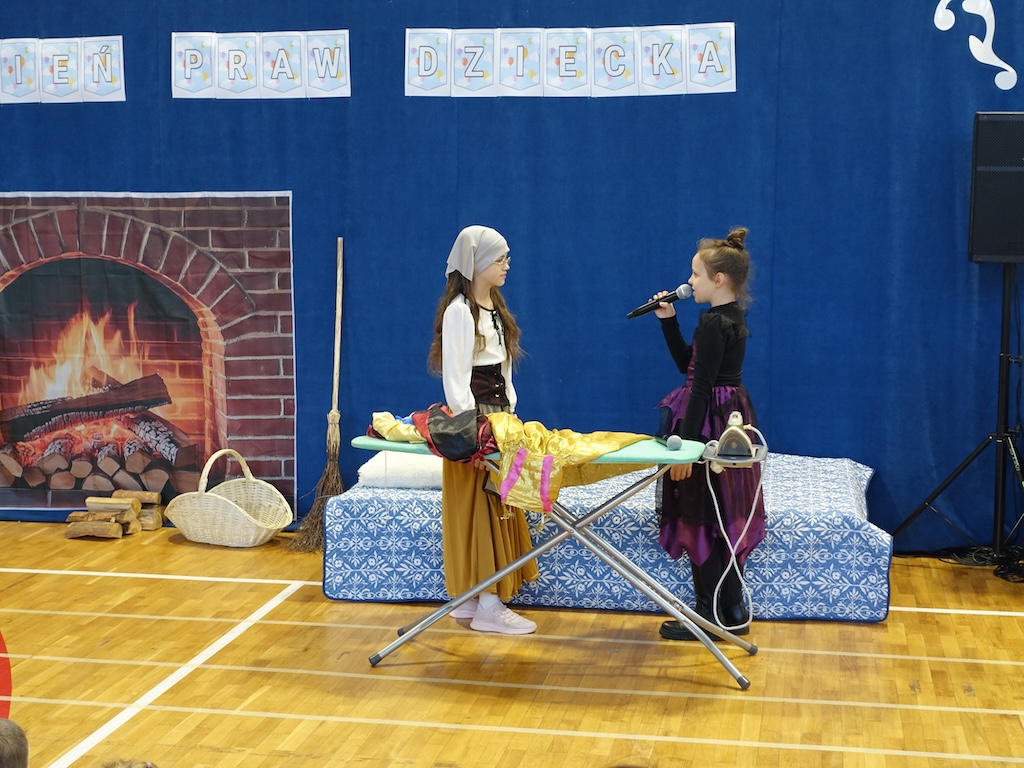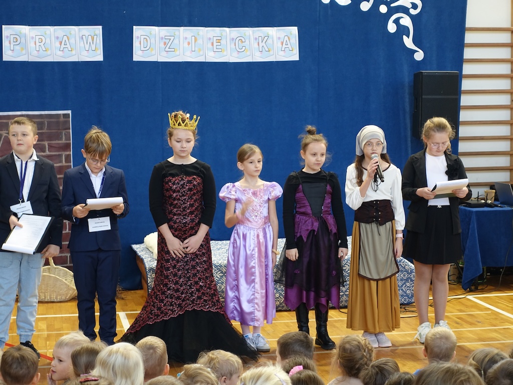 W przygotowanym przedstawieniu wystąpili uczniowie klasy 4, którzy – pracując pod czujnym okiem Rzecznika Praw Ucznia, Pani Iwony Pogonowskiej – zaprezentowali barwne, pouczające scenki inspirowane klasycznymi i współczesnymi bajkami. Na scenie pojawił się m.in. Kopciuszek, Księżniczka na ziarnku grochu oraz inni bohaterowie znanych opowieści. Każda z historii ukazywała sytuacje, w których dochodziło do łamania praw dziecka, a następnie ich obrony przez „Przedstawicieli Praw Dziecka”, przypominających z humorem i powagą o zasadach zawartych w Konwencji o Prawach Dziecka.