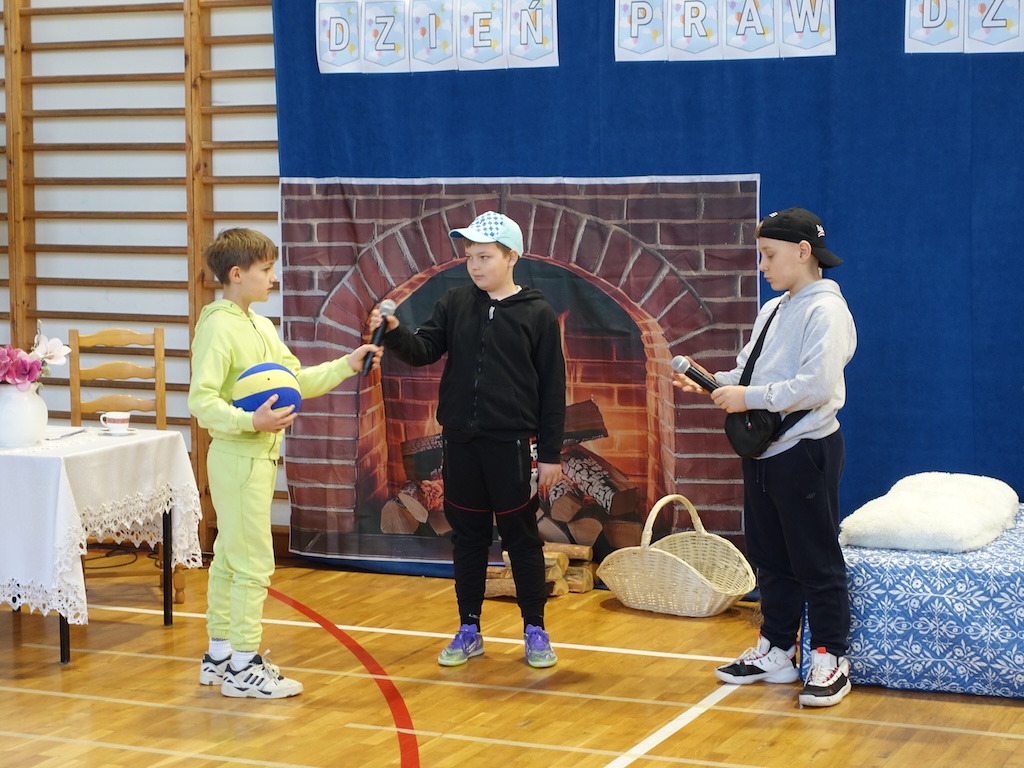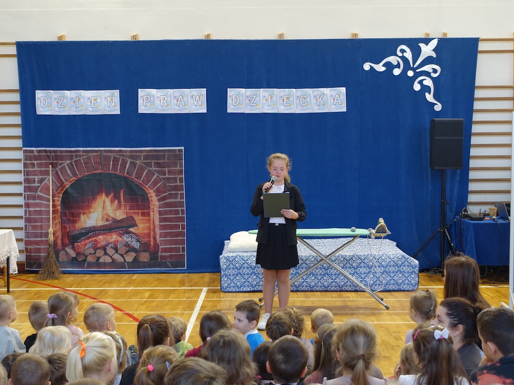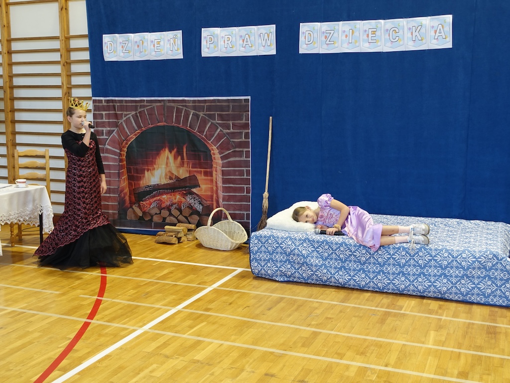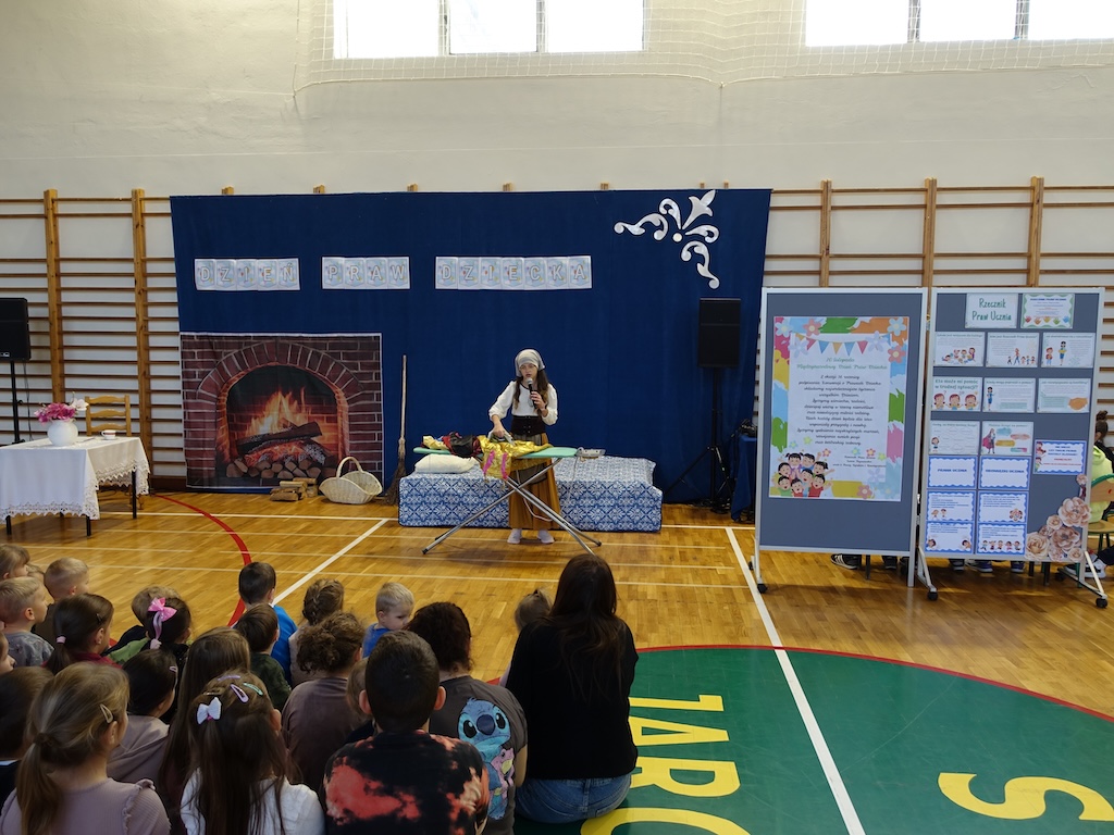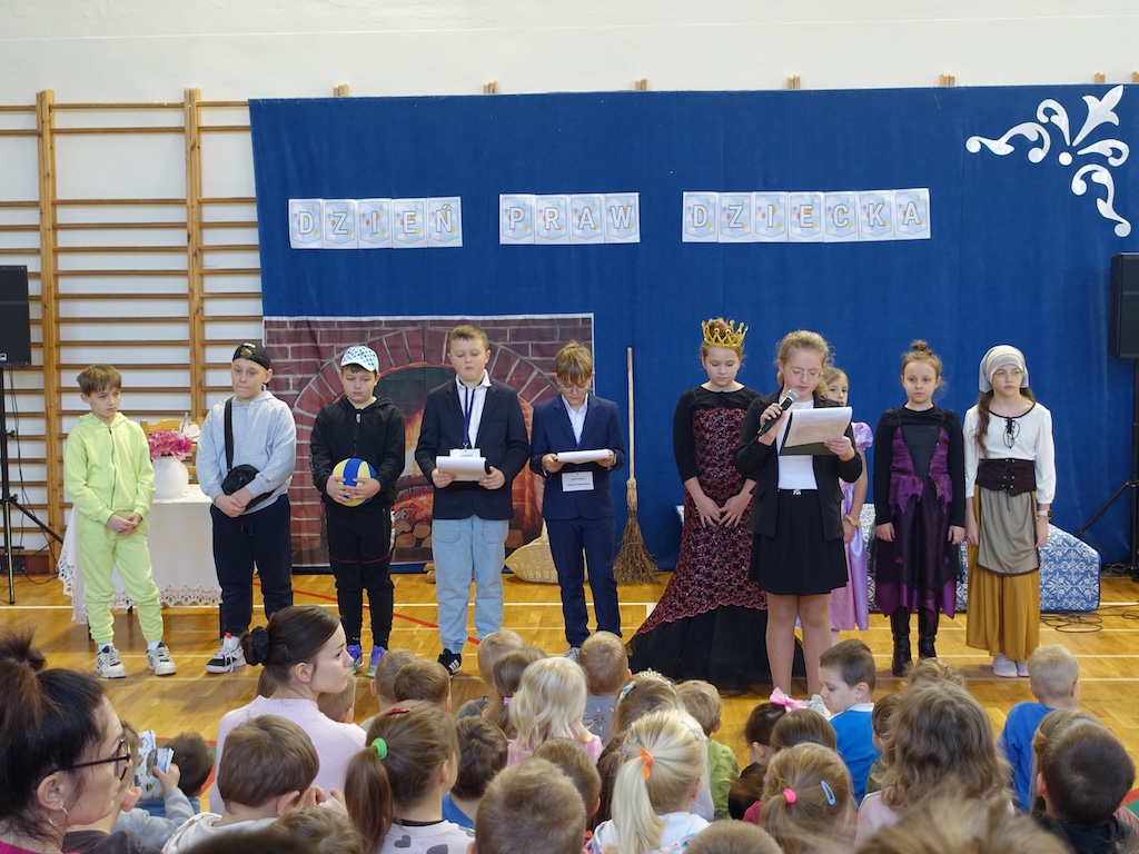 W przygotowanym przedstawieniu wystąpili uczniowie klasy 4, którzy – pracując pod czujnym okiem Rzecznika Praw Ucznia, Pani Iwony Pogonowskiej – zaprezentowali barwne, pouczające scenki inspirowane klasycznymi i współczesnymi bajkami. Na scenie pojawił się m.in. Kopciuszek, Księżniczka na ziarnku grochu oraz inni bohaterowie znanych opowieści. Każda z historii ukazywała sytuacje, w których dochodziło do łamania praw dziecka, a następnie ich obrony przez „Przedstawicieli Praw Dziecka”, przypominających z humorem i powagą o zasadach zawartych w Konwencji o Prawach Dziecka.