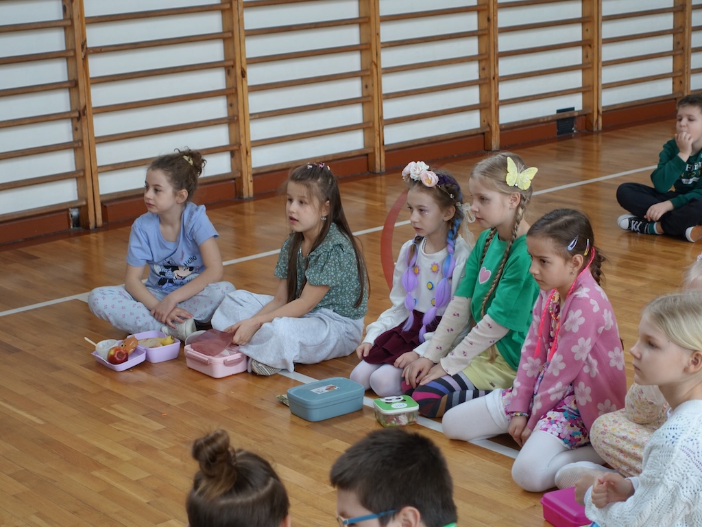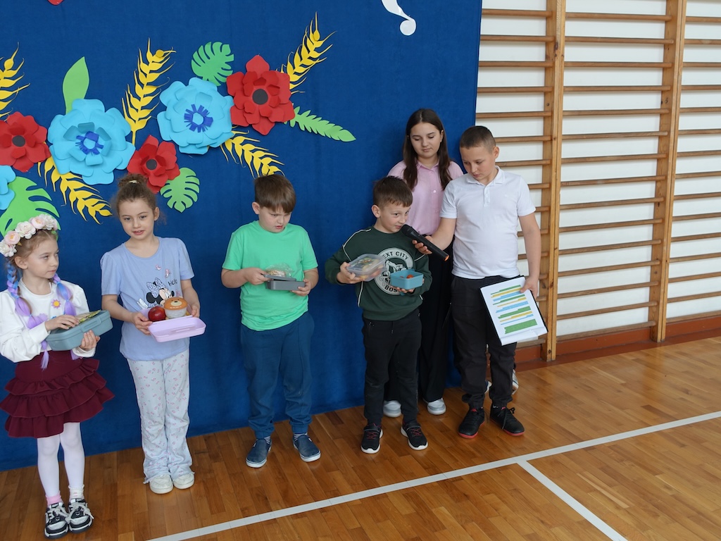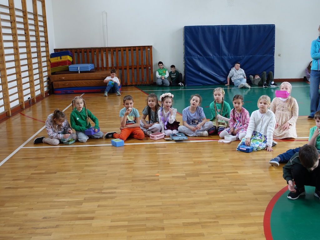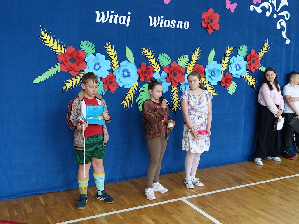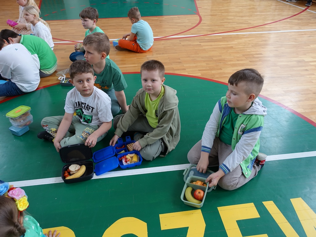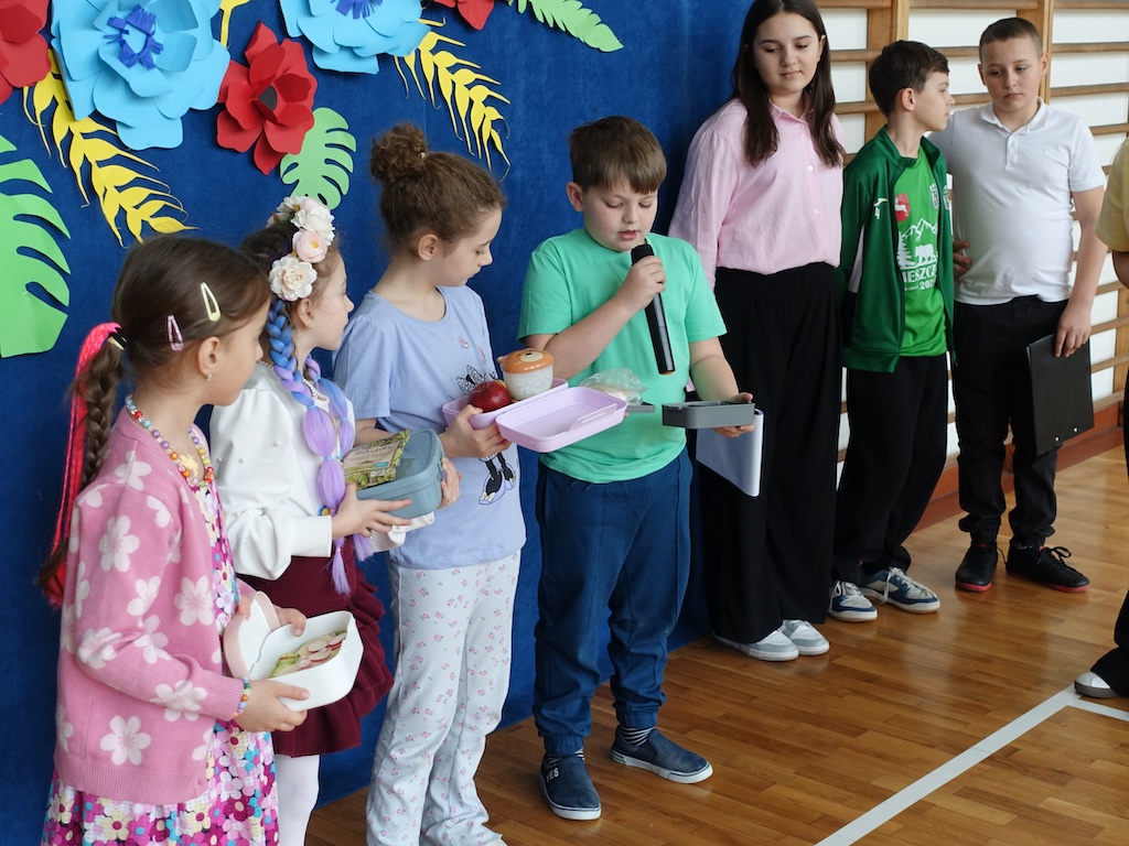 Kolejnym punktem programu było prezentowanie zdrowych, wiosennych śniadaniówek przygotowanych przez uczniów. Kolorowe kanapki, świeże owoce i warzywa oraz naturalne soki nie tylko cieszyły oko, ale również promowały zdrowe nawyki żywieniowe. Wspólne dzielenie się tym, co najlepsze, wzmocniło poczucie wspólnoty między klasami.