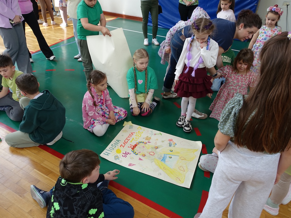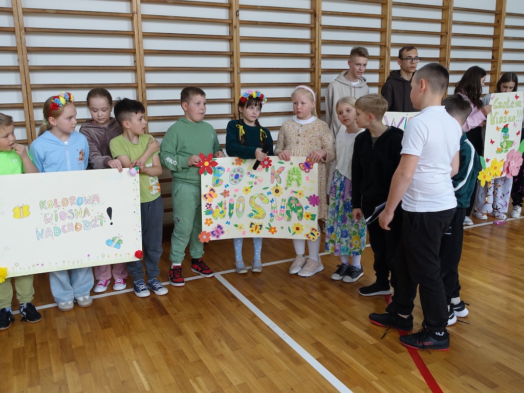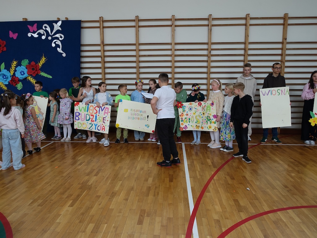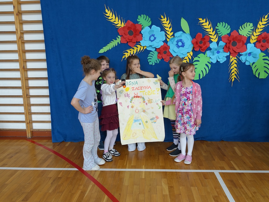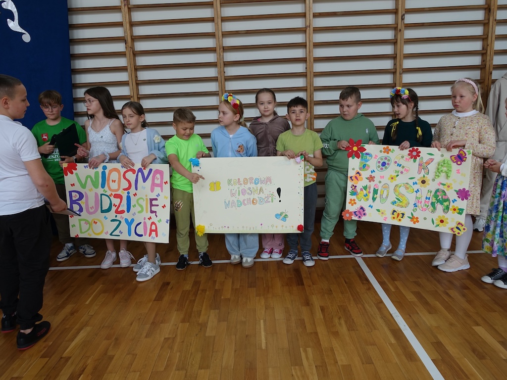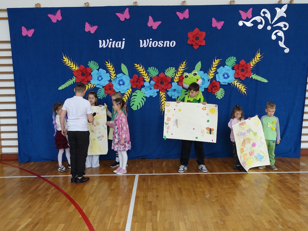 Na zakończenie dnia każda klasa otrzymała wyzwanie stworzenia wiosennych plakatów. Zadanie to pozwoliło połączyć twórcze zdolności uczniów z ich wiedzą na temat przyrody i zmieniającej się pory roku. Powstałe prace były pełne kolorów, motywów kwiatowych i symboli wiosny.