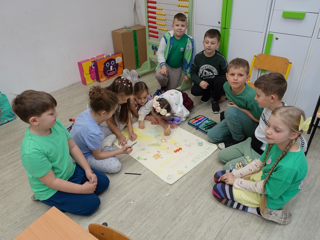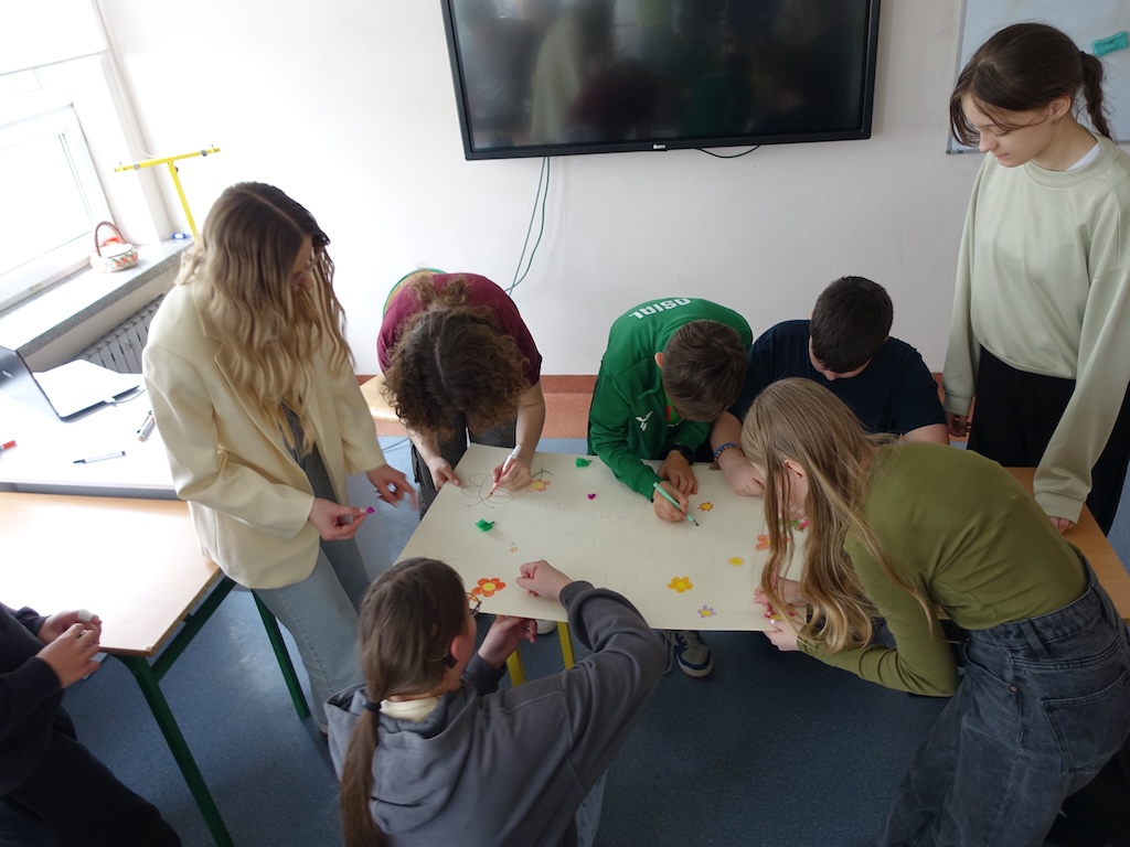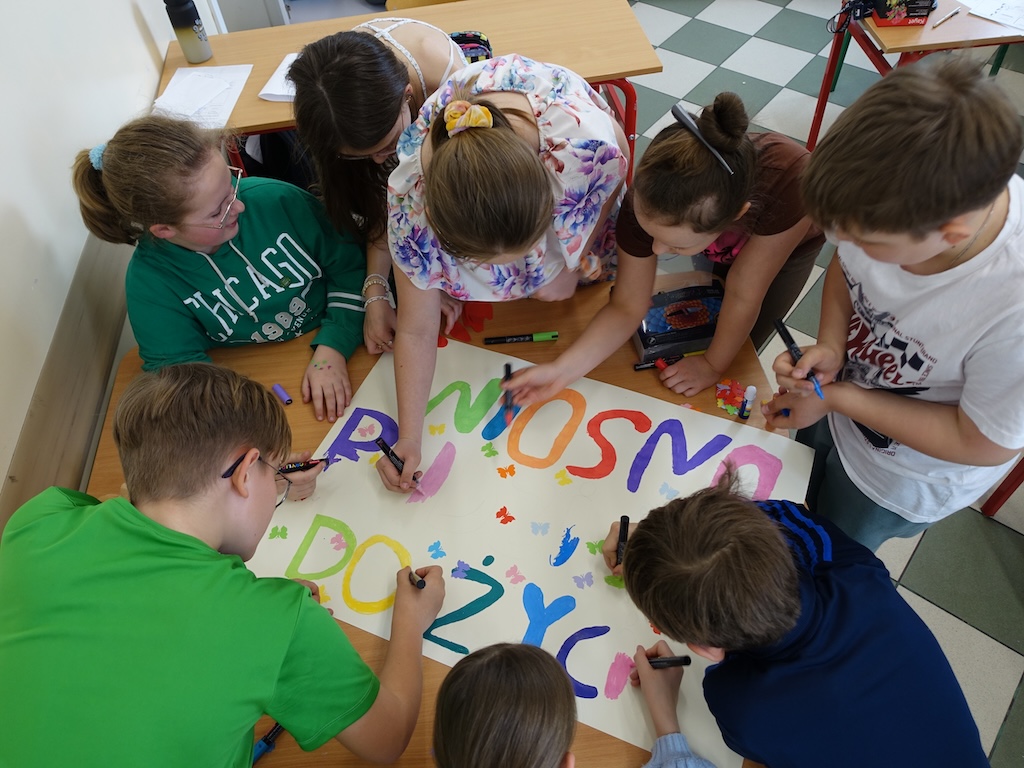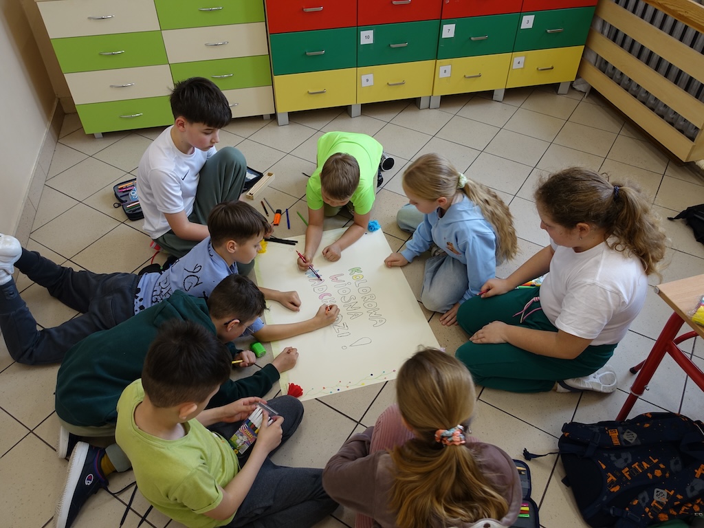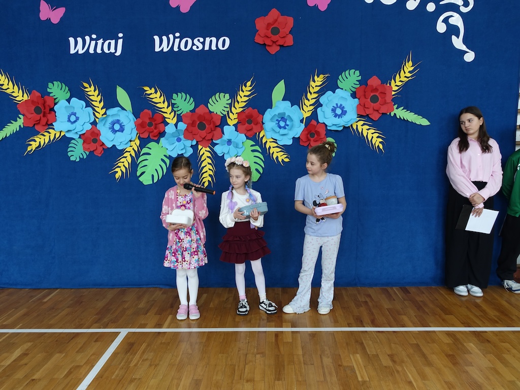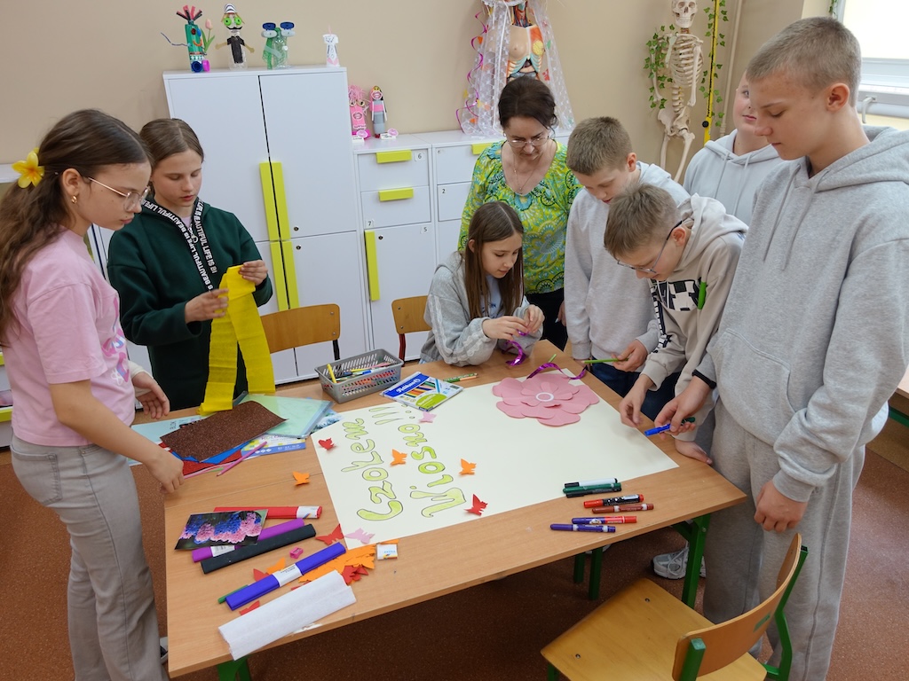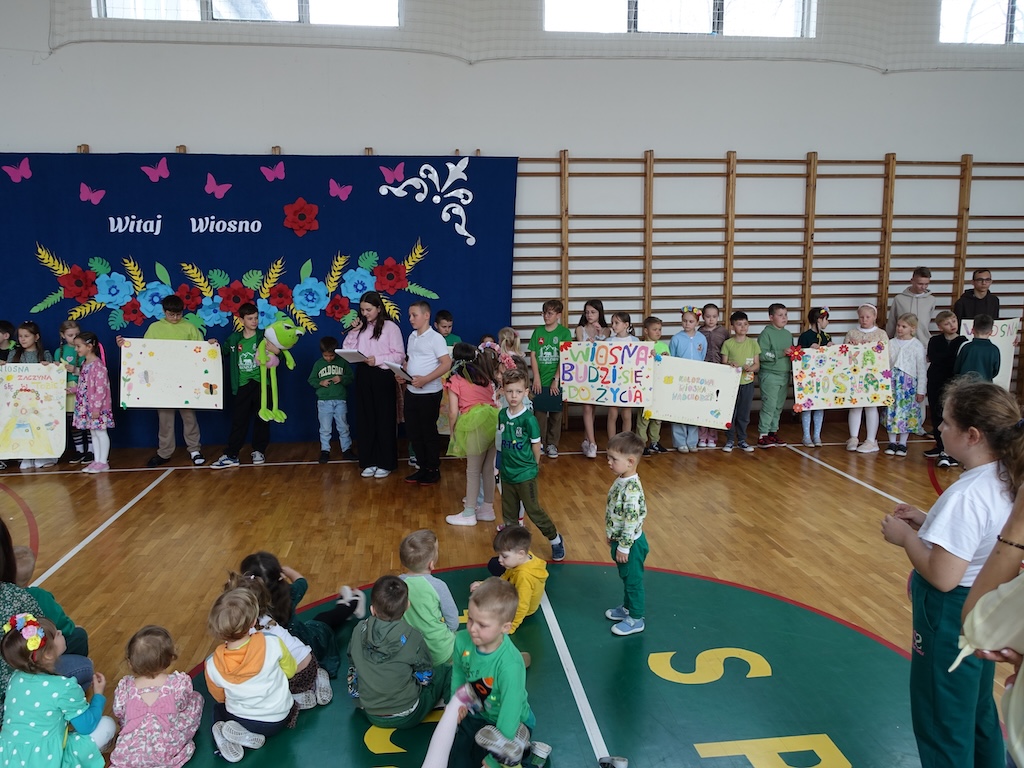 Na zakończenie dnia każda klasa otrzymała wyzwanie stworzenia wiosennych plakatów. Zadanie to pozwoliło połączyć twórcze zdolności uczniów z ich wiedzą na temat przyrody i zmieniającej się pory roku. Powstałe prace były pełne kolorów, motywów kwiatowych i symboli wiosny.