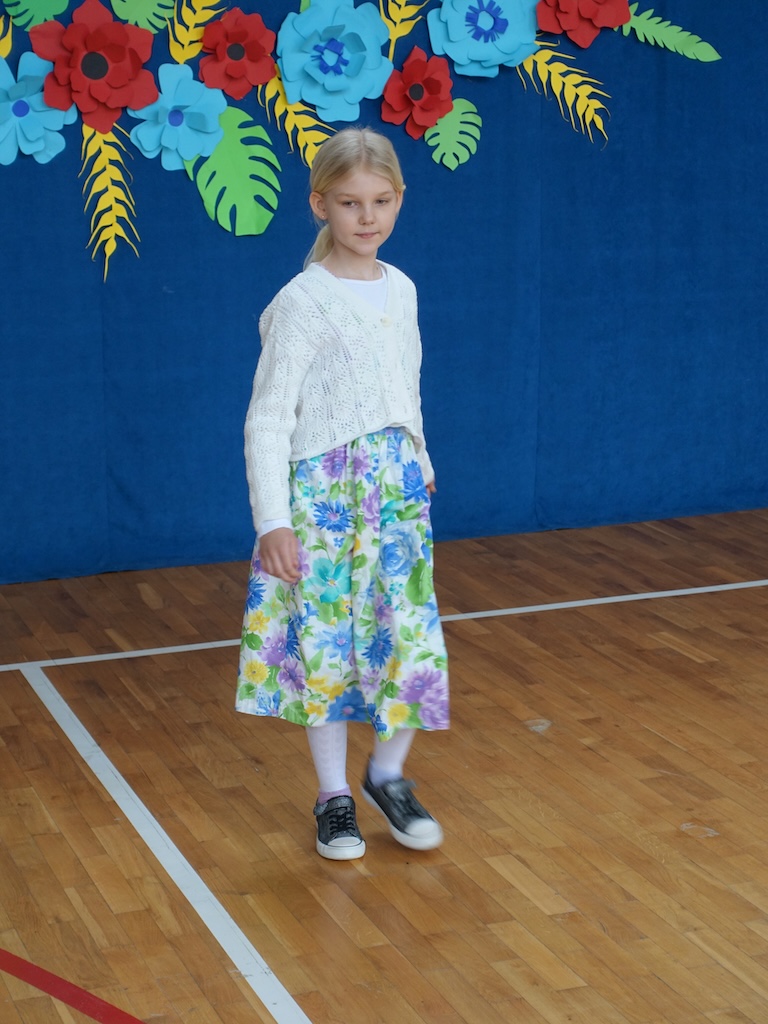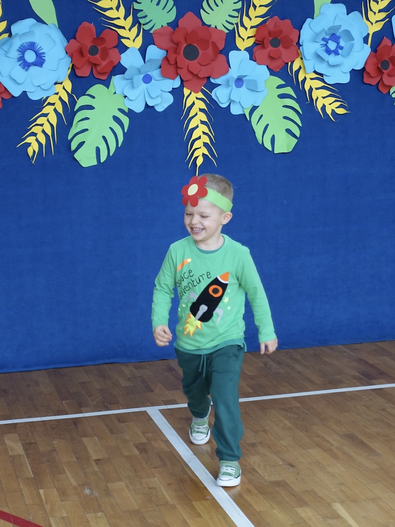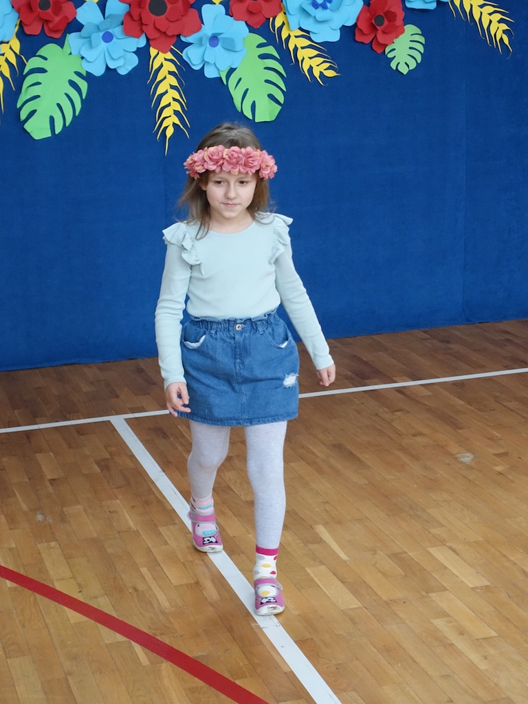 Wiosenny pokaz mody pozwolił uczniom zaprezentować swoje pomysły na kolorowe i kreatywne stroje nawiązujące do budzącej się do życia przyrody. Barwne ubrania i wesołe dodatki stworzyły prawdziwie radosną atmosferę, podkreślając jednocześnie unikalność każdego uczestnika. Uvczniowie przygotowali wyjątkowe stylizacje, co sprawiło, że wydarzenie było pełne różnorodności i pozytywnej energii.