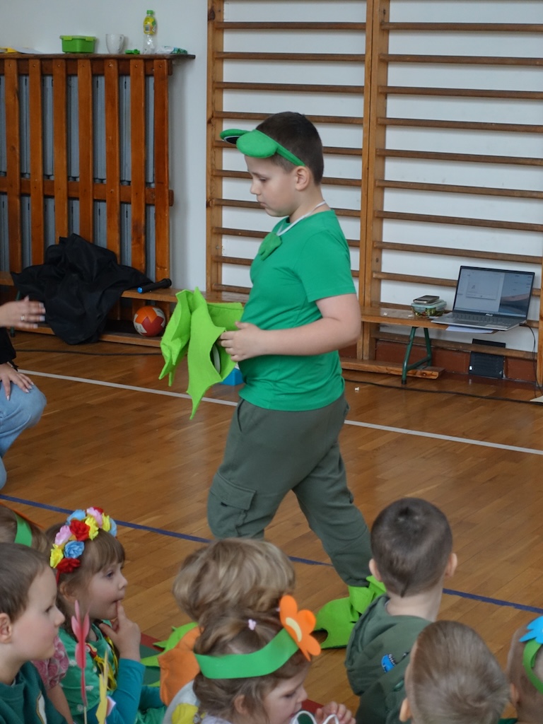 Po lekcjach odbył się fascynujący pokaz iluzjonisty, który zachwycił wszystkich zgromadzonych. Magiczne sztuczki i zaskakujące efekty sprawiły, że dzieci z zapartym tchem śledziły każdy ruch artysty. Ta niezwykła forma rozrywki wprowadziła wiosenny nastrój i dodała energii na dalszą część dnia.