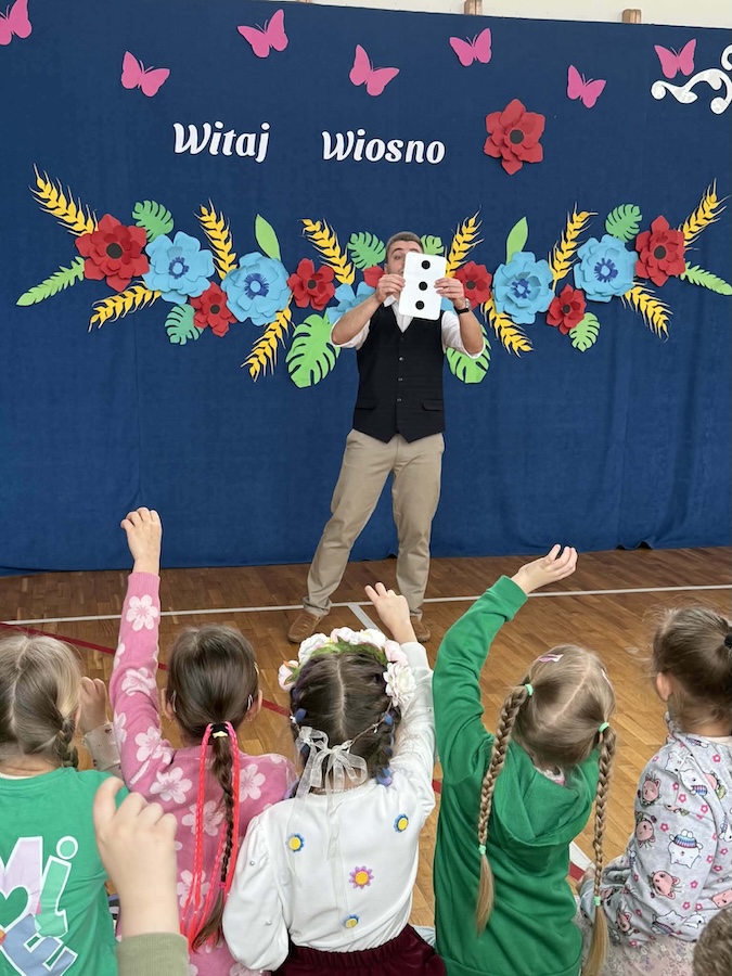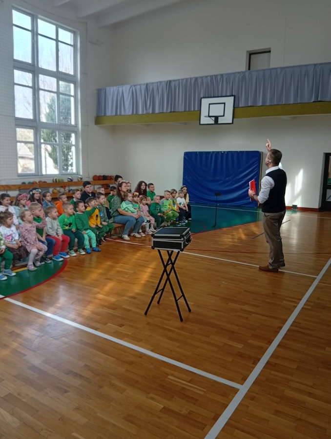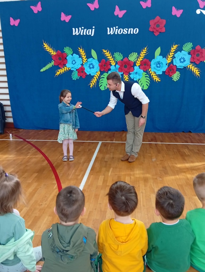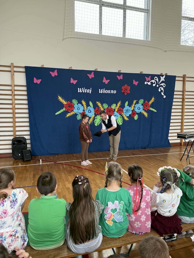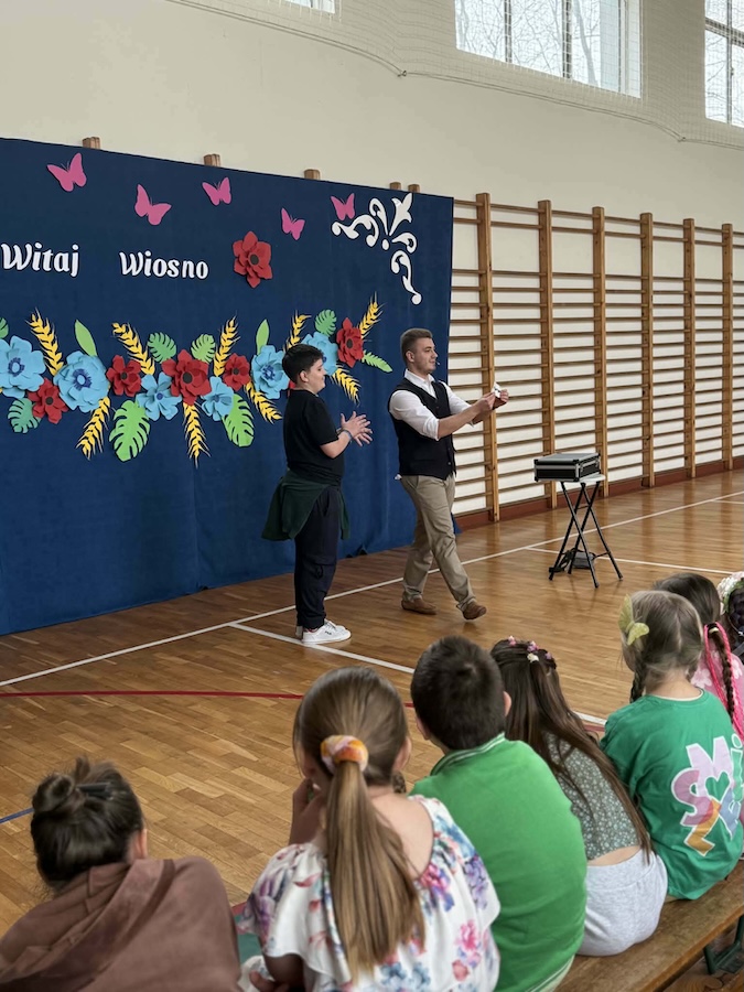 20 marca naszą szkołę odwiedził wyjątkowy gość – Bartosz Rybczyński, zawodowy iluzjonista, który od ponad 6 lat dzieli się swoją pasją z publicznością na całym świecie. Jego pokazy to nie tylko magia, ale przede wszystkim niezapomniane widowisko pełne emocji i dobrej zabawy. Artysta ma na swoim koncie ponad 500 występów na żywo, które prezentował podczas różnorodnych wydarzeń – od imprez szkolnych, przez eventy firmowe, aż po duże sceny. Każdy jego występ to połączenie efektownych trików, humoru oraz niezwykłej charyzmy. Nasi uczniowie nie byli jedynie biernymi obserwatorami tego wydarzenia – dzieci bardzo chętnie brały udział w pokazie, stając się jego częścią. Ta interakcja sprawiła, że całe wydarzenie miało wyjątkowy i niepowtarzalny charakter.
