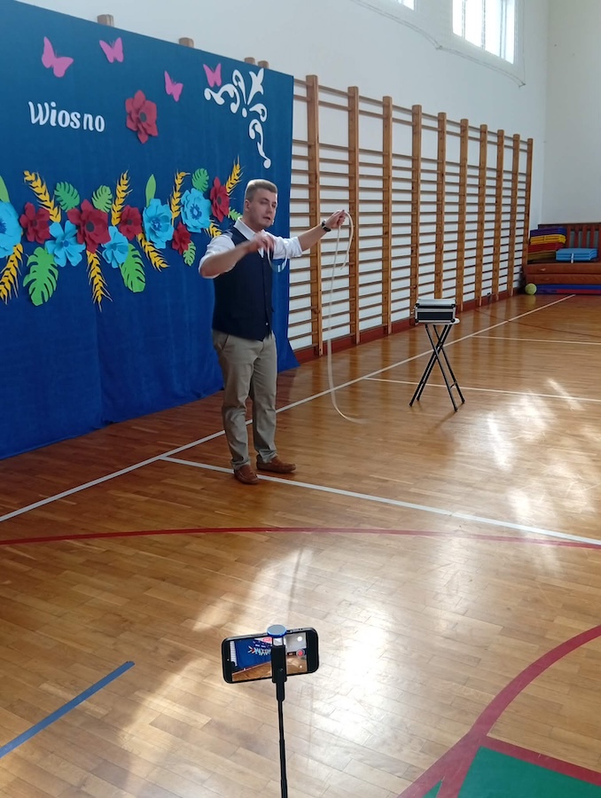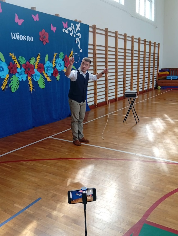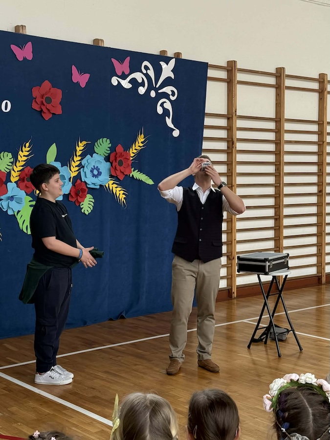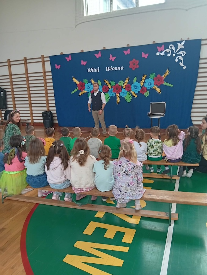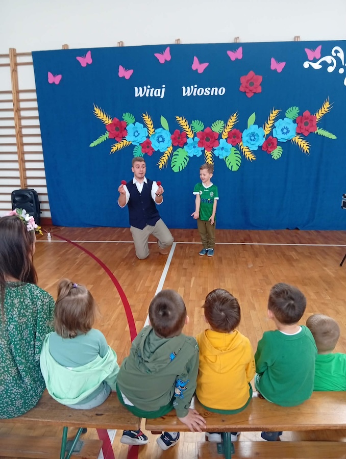 20 marca naszą szkołę odwiedził wyjątkowy gość – Bartosz Rybczyński, zawodowy iluzjonista, który od ponad 6 lat dzieli się swoją pasją z publicznością na całym świecie. Jego pokazy to nie tylko magia, ale przede wszystkim niezapomniane widowisko pełne emocji i dobrej zabawy. Artysta ma na swoim koncie ponad 500 występów na żywo, które prezentował podczas różnorodnych wydarzeń – od imprez szkolnych, przez eventy firmowe, aż po duże sceny. Każdy jego występ to połączenie efektownych trików, humoru oraz niezwykłej charyzmy. Nasi uczniowie nie byli jedynie biernymi obserwatorami tego wydarzenia – dzieci bardzo chętnie brały udział w pokazie, stając się jego częścią. Ta interakcja sprawiła, że całe wydarzenie miało wyjątkowy i niepowtarzalny charakter.
