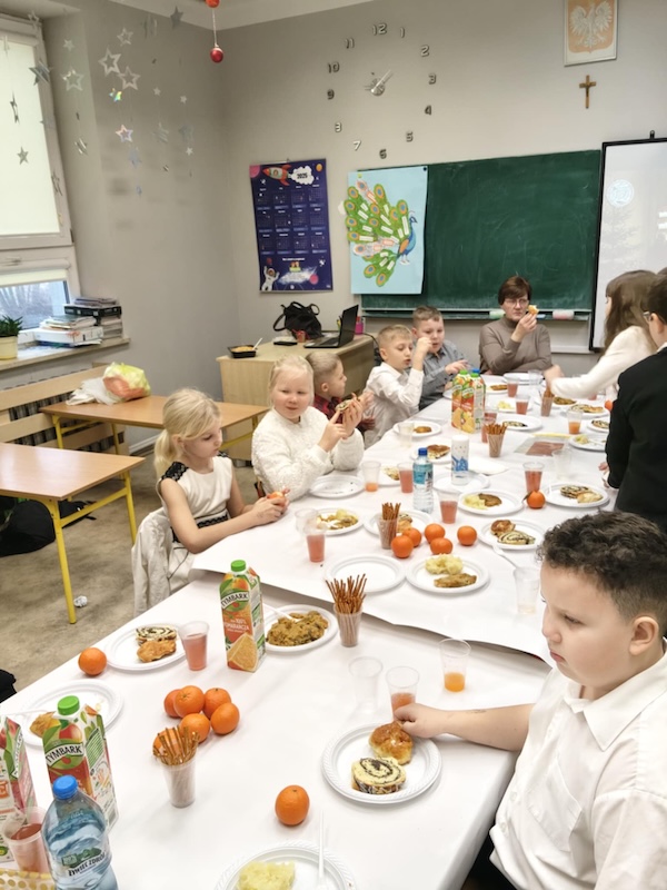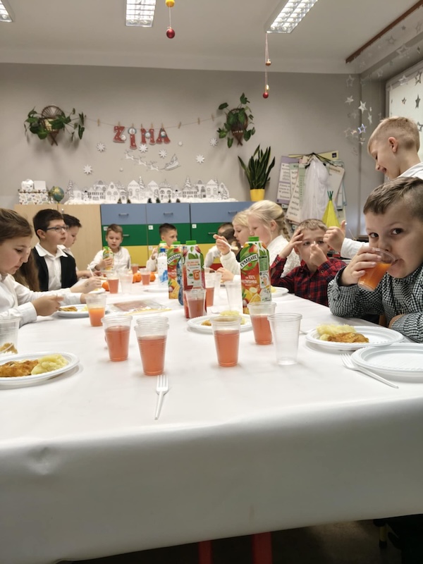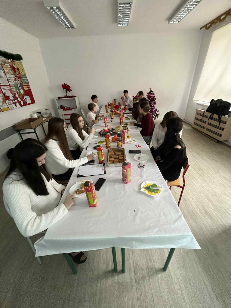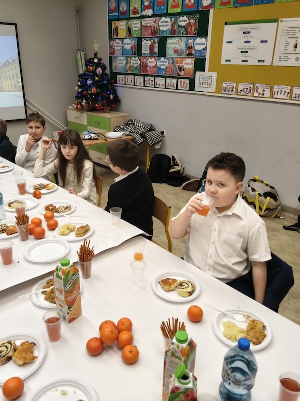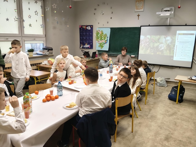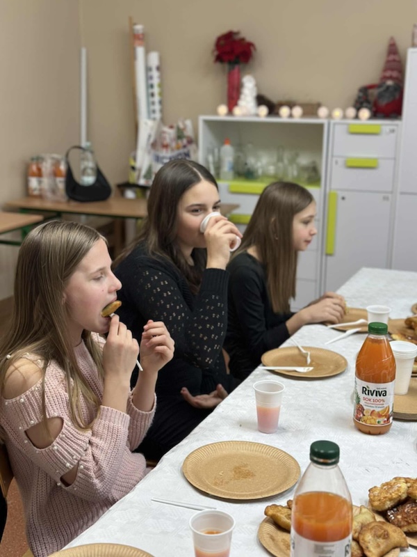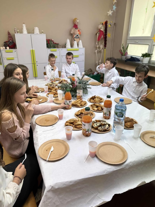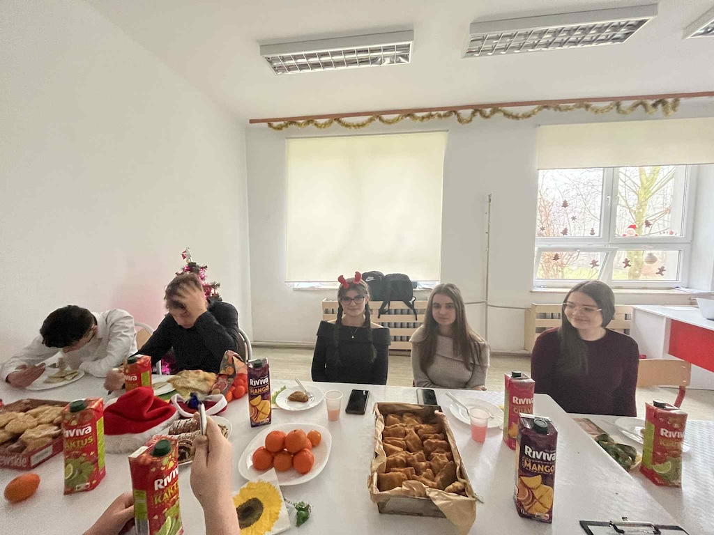 Następnie uczniowie wraz z wychowawcami udali się na klasowe wigilie. Był to czas rozmów, składania sobie życzeń, dzielenia się opłatkiem oraz wspólnego świętowania w gronie koleżanek i kolegów.