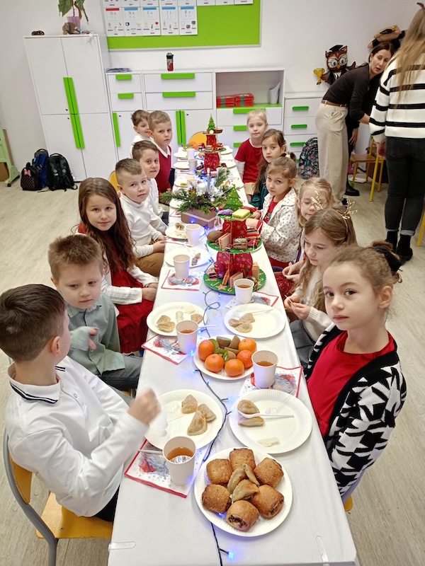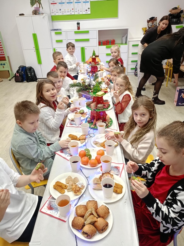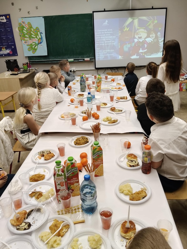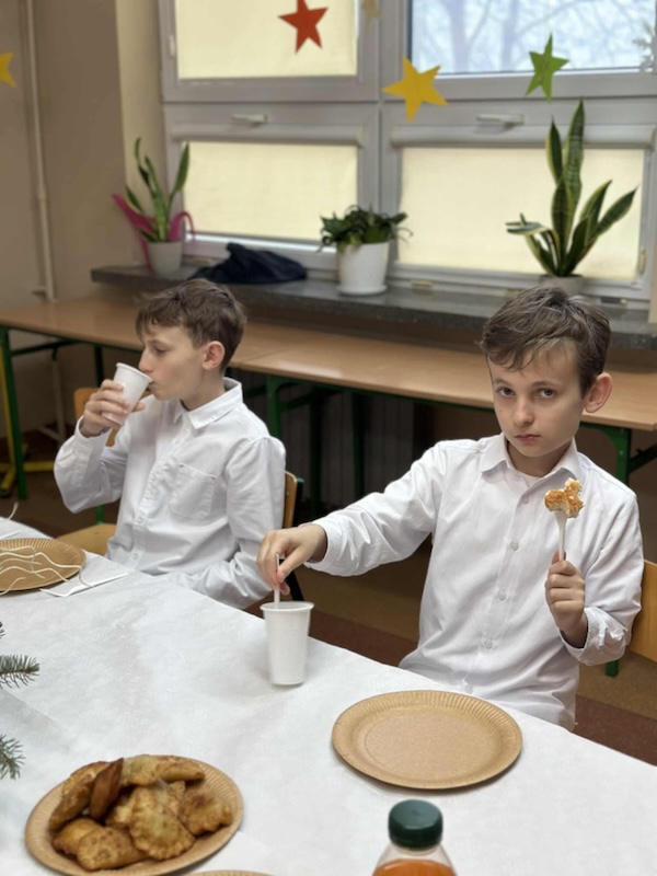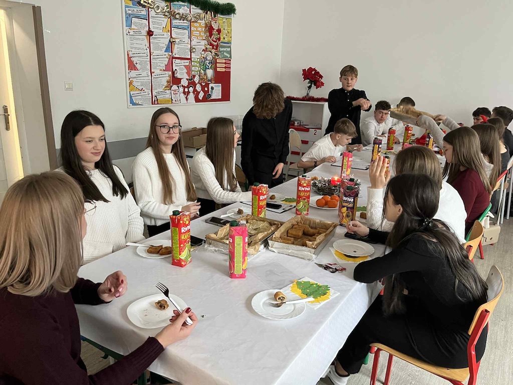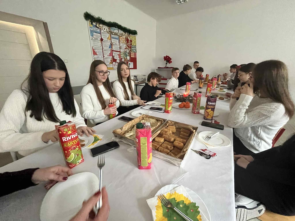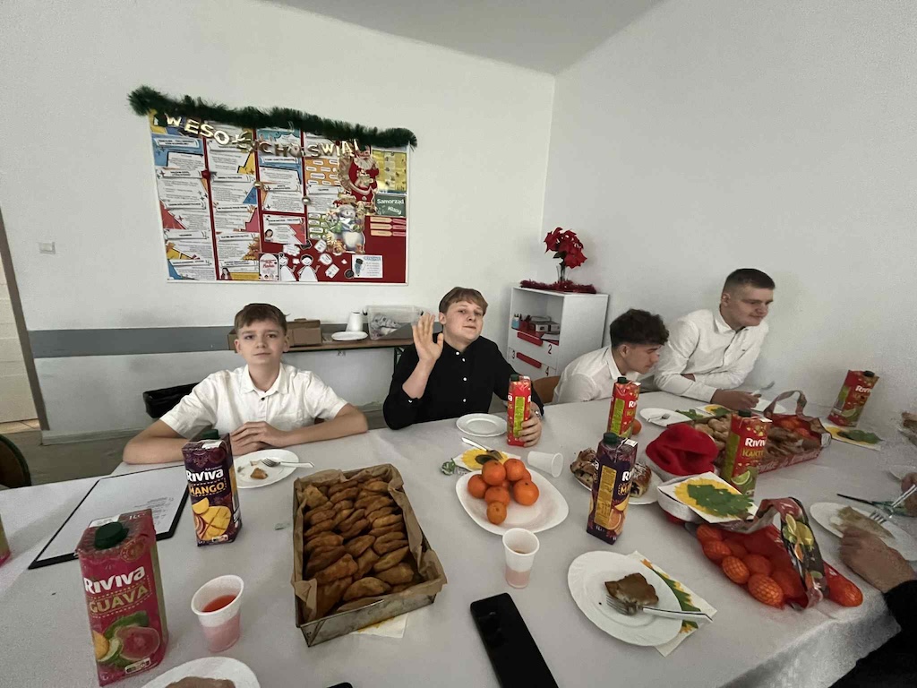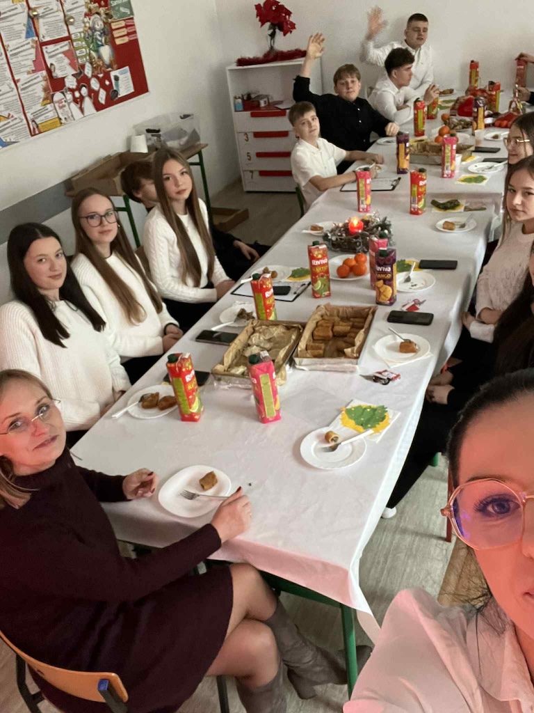 W przedświątecznej, wyjątkowo ciepłej atmosferze w naszej szkole odbyły się wigilie klasowe połączone ze wspólnym kolędowaniem a także montażem słowno-muzycznym naszych młodszych uczniów. To wydarzenie stało się piękną okazją do integracji, refleksji i wspólnego przeżywania magii Świąt Bożego Narodzenia.
