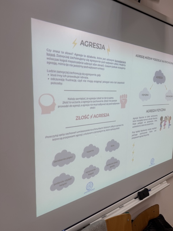 Dziś uczniowie klasy 1 wzięli udział w warsztatach prowadzonych przez szkolnego psychologa, poświęconych tematyce agresji i przemocy.