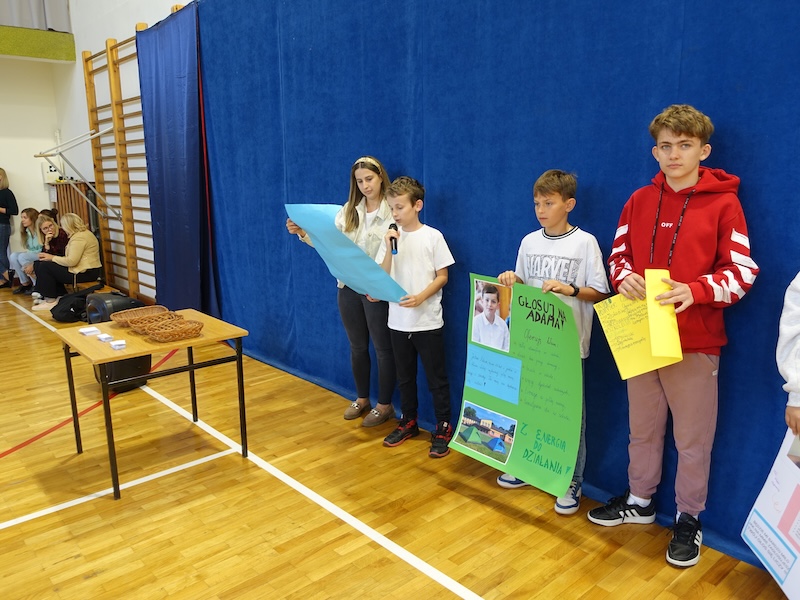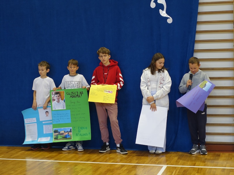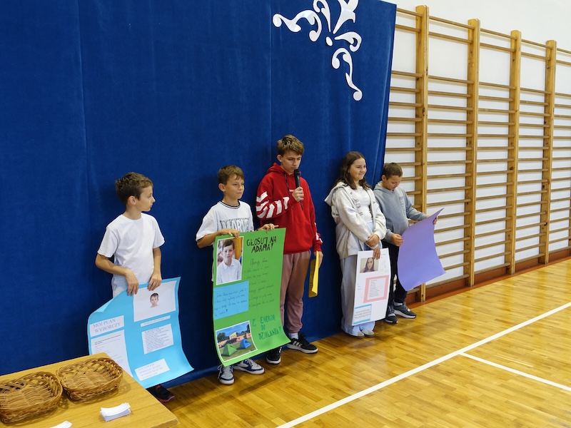 26 września w naszej szkole odbyły się wybory do Samorządu Uczniowskiego oraz Rzecznika Praw Ucznia. Przed głosowaniem kandydaci przedstawili swoje programy wyborcze na przygotowanych pięknie plakatach. Zamieszczone na nich pomysły miały za zadanie przekonać uczniów do oddania głosu. Głosowanie dotyczyło również nauczyciela, który obejmie funkcję opiekuna samorządu.