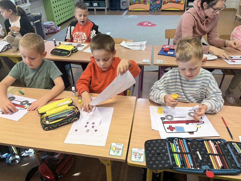 Po części czytelniczej przedszkolaki z entuzjazmem przystąpiły do wykonania kart pracy związanych z tematem zajęć. Ćwiczenia pozwoliły im utrwalić nowo zdobytą wiedzę oraz rozwijały ich spostrzegawczość i umiejętność logicznego myślenia.