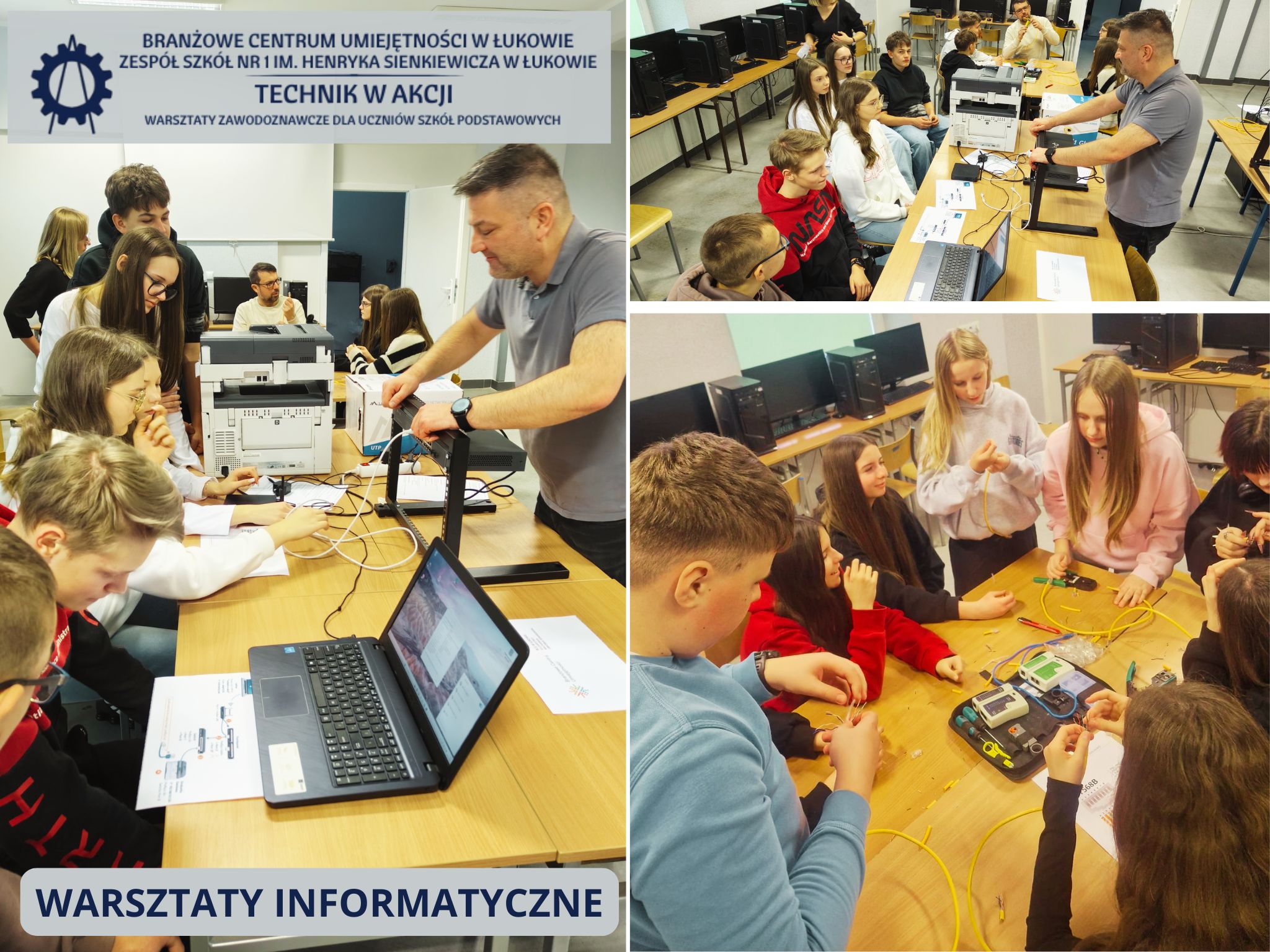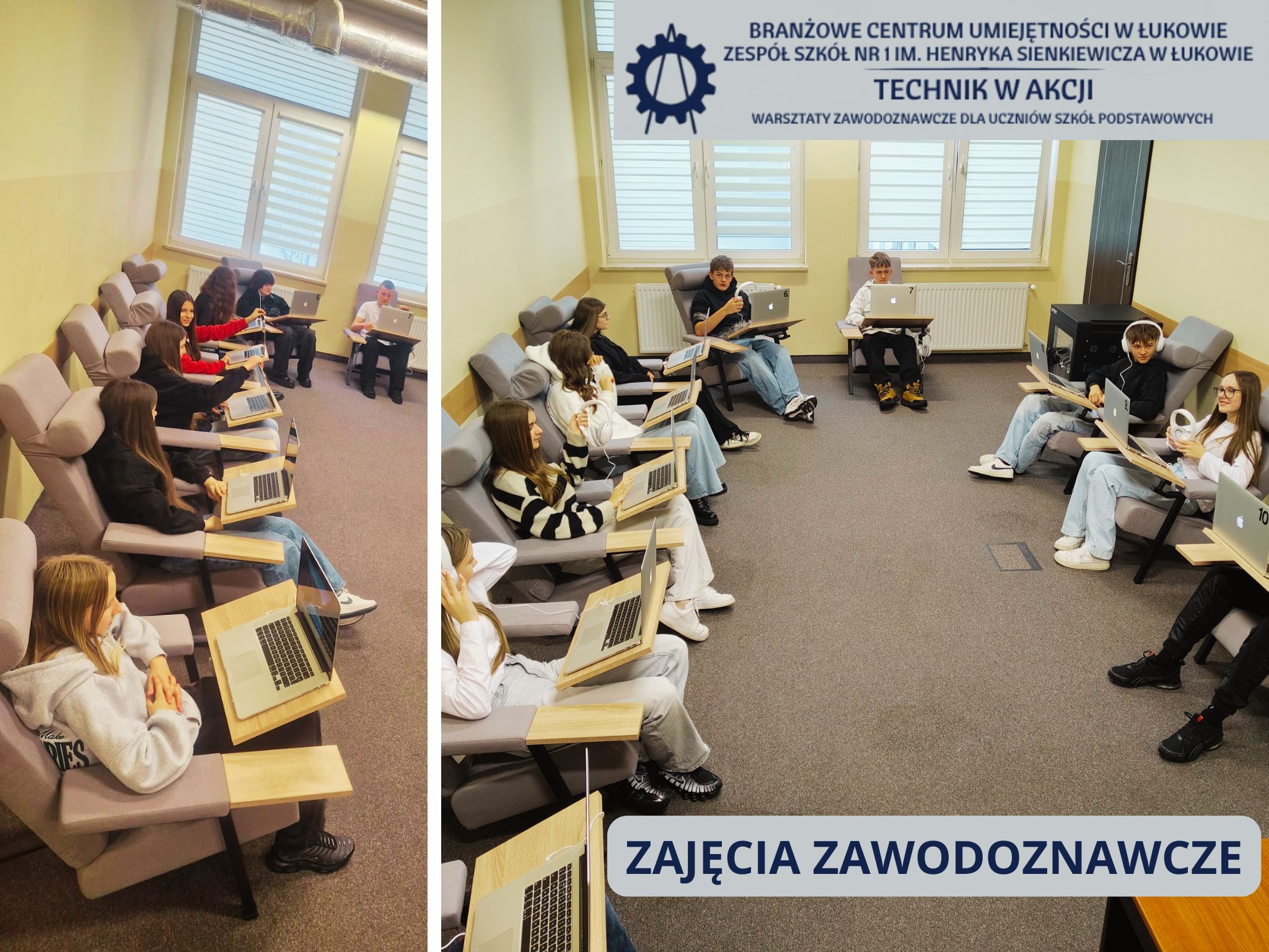 W dniu 27 stycznia 2026 r. uczniowie Szkoły Podstawowej im. Tadeusza Kościuszki w Jarczewie, ze Szkoły Podstawowej w Oszczepalinie oraz Szkoły Podstawowej nr 5 im. gen. Władysława Sikorskiego w Łukowie uczestniczyli w zajęciach warsztatowych realizowanych w Zespole Szkół Nr 1 w Łukowie oraz Branżowym Centrum Umiejętności w Łukowie, w ramach projektu „Technik w Akcji”.