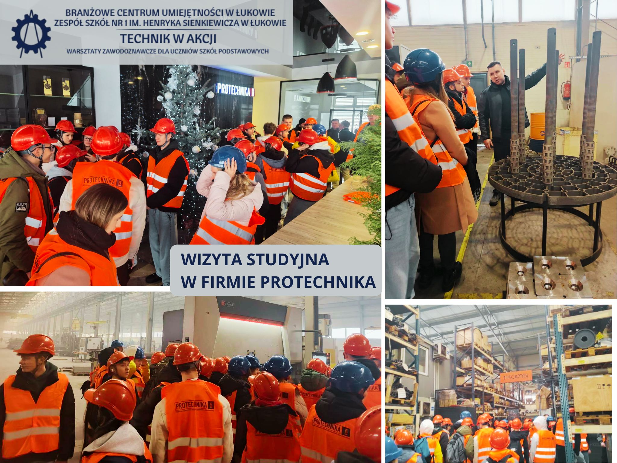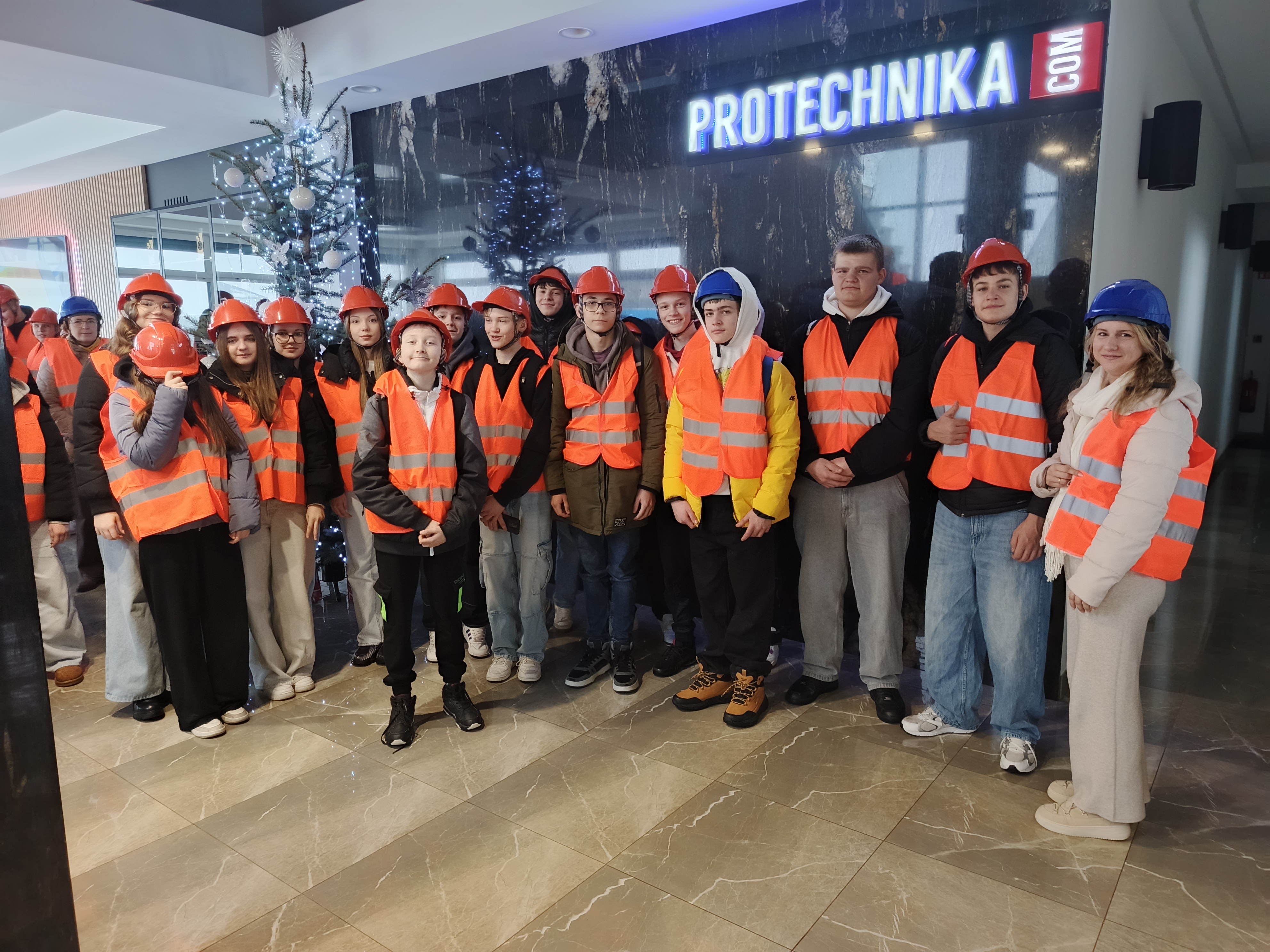 Dzień warsztatowy rozpoczął się od wizyty w zakładzie produkcyjnym PROTECHNIKA Sp. z o.o. sp. k. w Dębowicy – nowoczesnym przedsiębiorstwie zajmującym się projektowaniem i produkcją zaawansowanych urządzeń dla przemysłu. Uczniowie mieli możliwość zobaczyć, jak w praktyce funkcjonują współczesne technologie obróbki metali, maszyny CNC oraz zautomatyzowane procesy produkcyjne, a także poznać realia pracy w nowoczesnym środowisku przemysłowym.